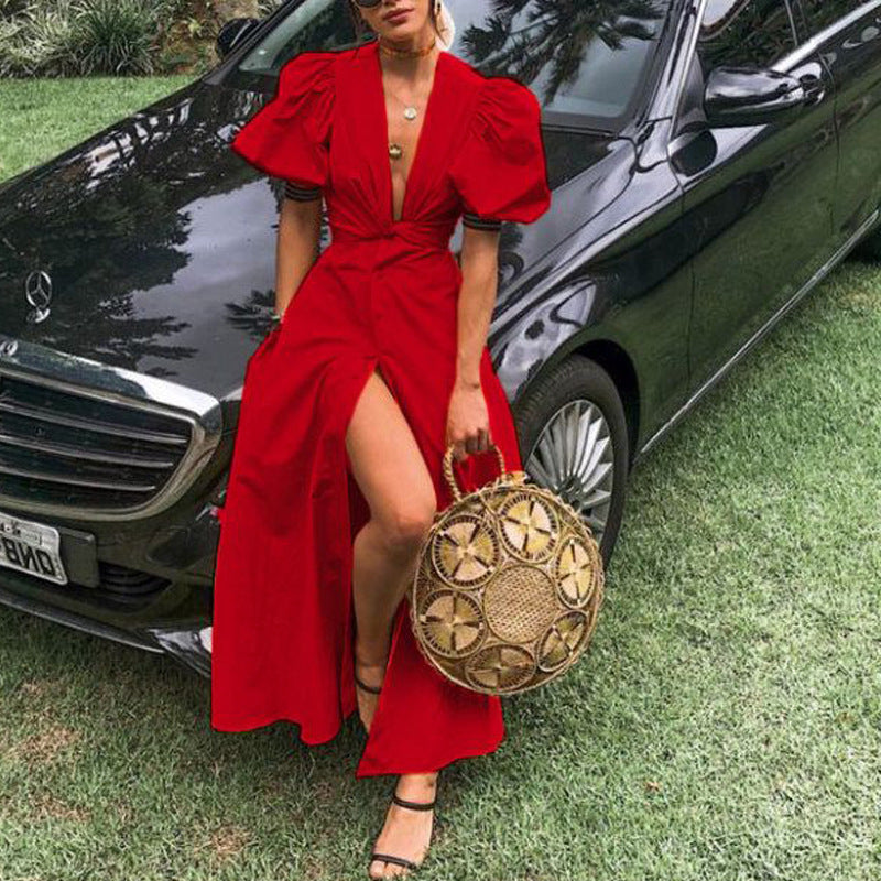 V-neck Raglan Sleeve Single-breasted Dress