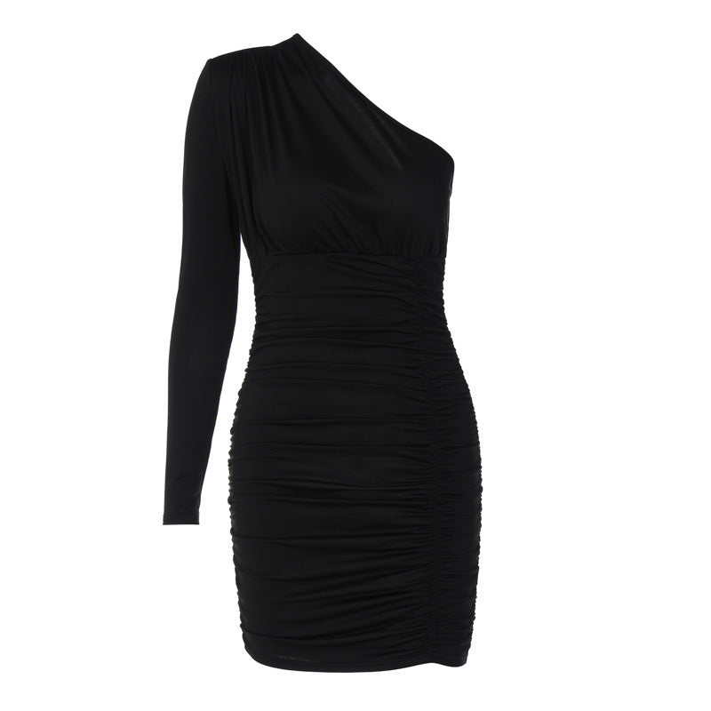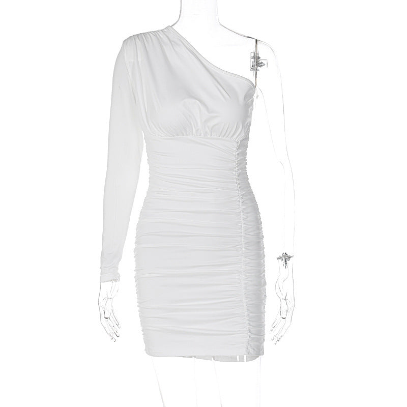 Pleated One-shoulder Dress