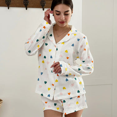 Heart Printing Long-sleeved Shirt And Shorts Suit